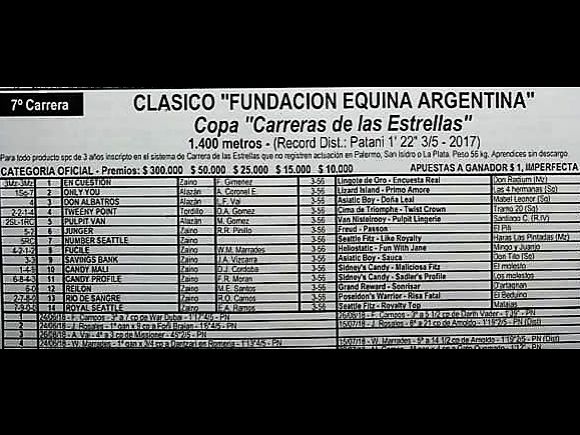 The Jorge Atucha winner and the second one at the Montevideo got earn 20,000 pesos extra from the Bonus Estrellas for being the best qualified from the registered ones.